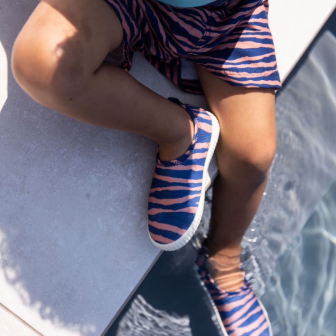 At Swim Essentials, we offer a fun range of kids’ water shoes in playful prints and vibrant colours! For boys we have: Jungle Print, Green Leopard Print, and Blue/Orange Zebra Print. For girls we have: Lilac Leopard Print and Apricot Orange Print.
